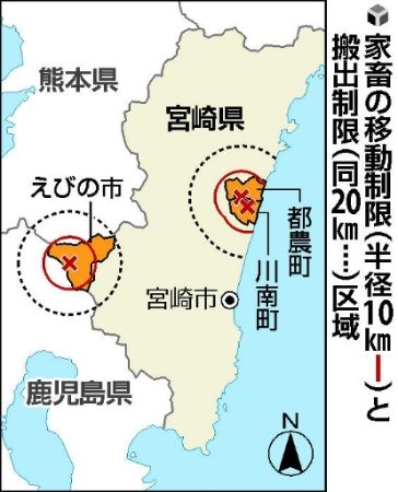 農林水産省の担当者は7日、「感染頭数や処分頭数が増えても、移動制限区域の外には広がっておらず、今後の対応に変化はない」と述べた。宮崎県畜産課は同日の記者会見で「空気感染では被害が広域に拡大するはず。人や車などの行き来など複数の可能性を調査する」との見解を示した。